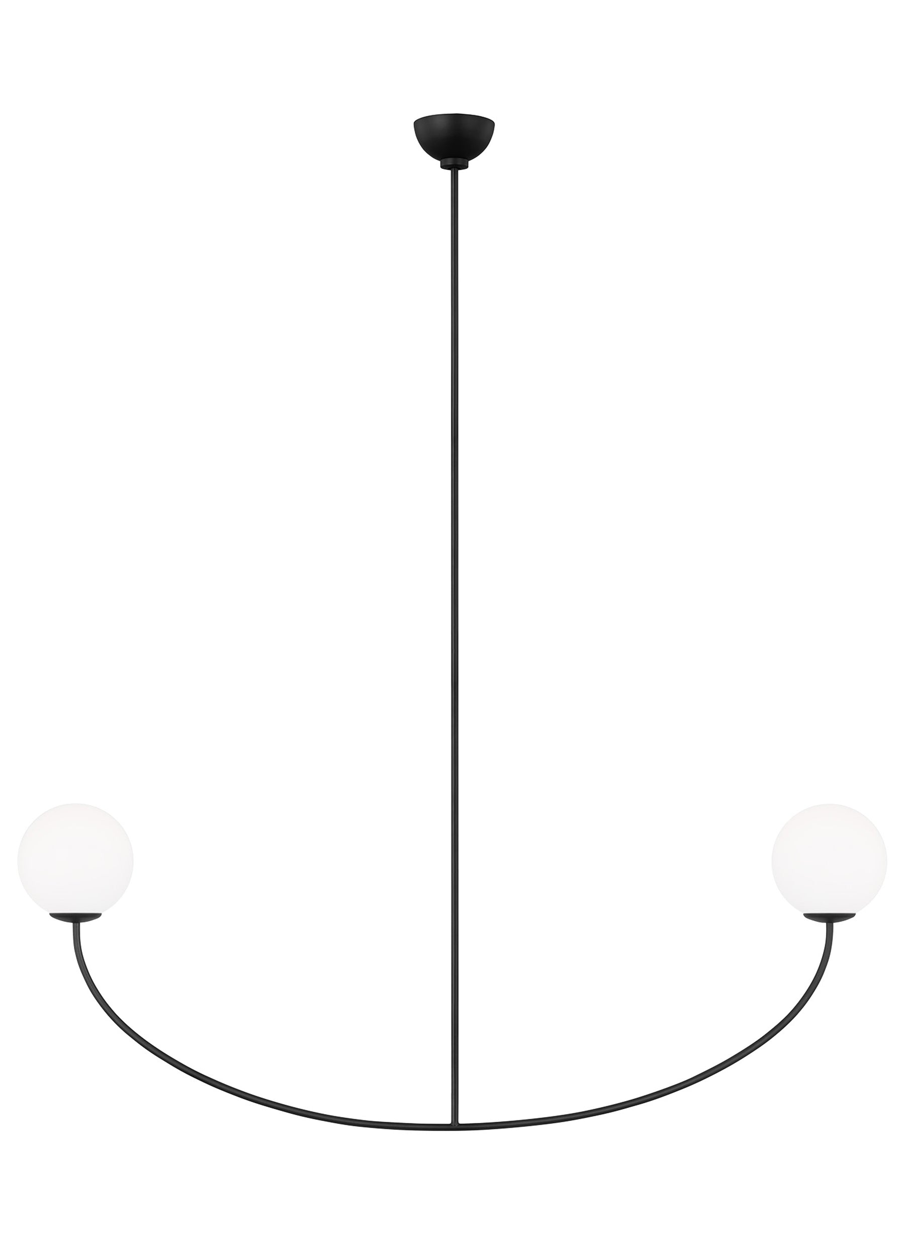 The graceful arms of AERIN's Italian inspired Galassia collection is a Mid-Century modern design with Milk white glass orbs. From Modern to Modern Farmhouse to traditional settings, this large collection includes an Extra Large chandelier, two-light pendants in two sizes, four-light chandelier, one-light pendant and a number of wall sconces. Available in Burnished Brass and Midnight Black finishes.