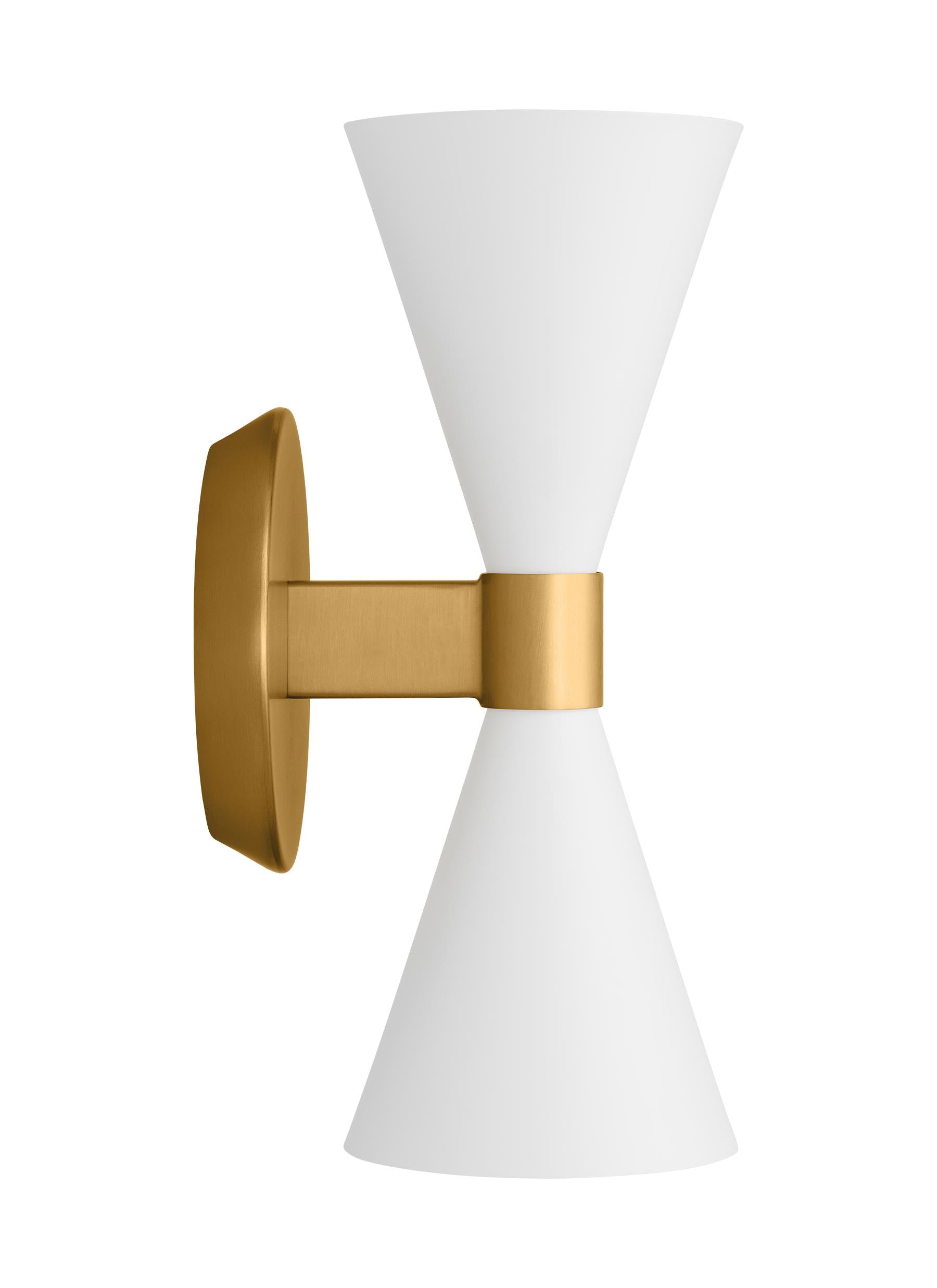 The Albertine collection by AERIN for Visual Comfort is classic mid-century modern, available in burnished brass with either matte white or midnight black shades. AERIN's Albertine collection also features an indoor collection of wall sconces and chandeliers, and outdoor modern wall sconces.