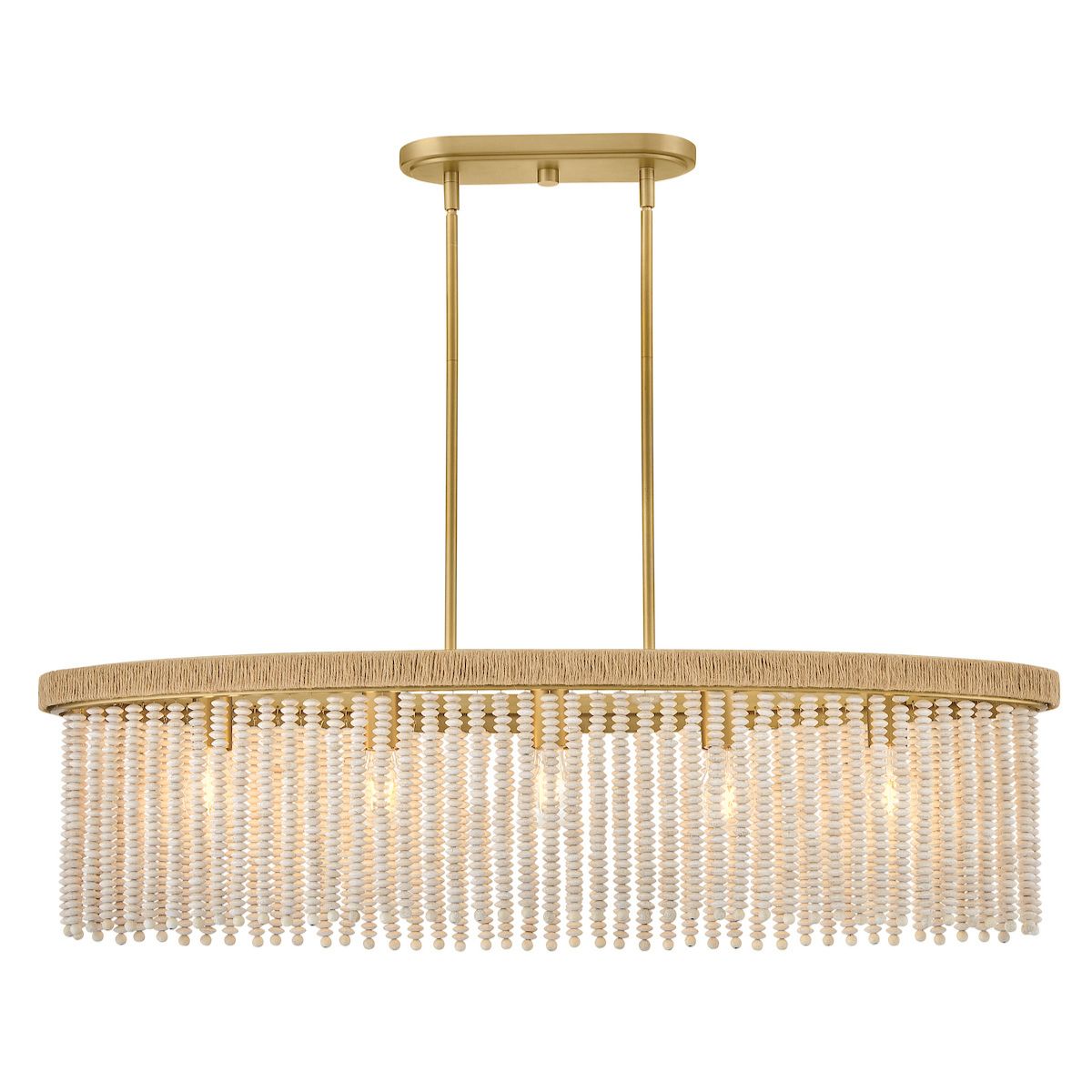 Indra blends coastal styling with an elegant transitional silhouette to fill your space with a naturally inspired atmosphere. A hand-strung curtain of stacked, taupe wooden beads diffuses warm illumination, while a frame hand-wrapped in natural fiber jute rope adds a touch of organic texture to your décor.