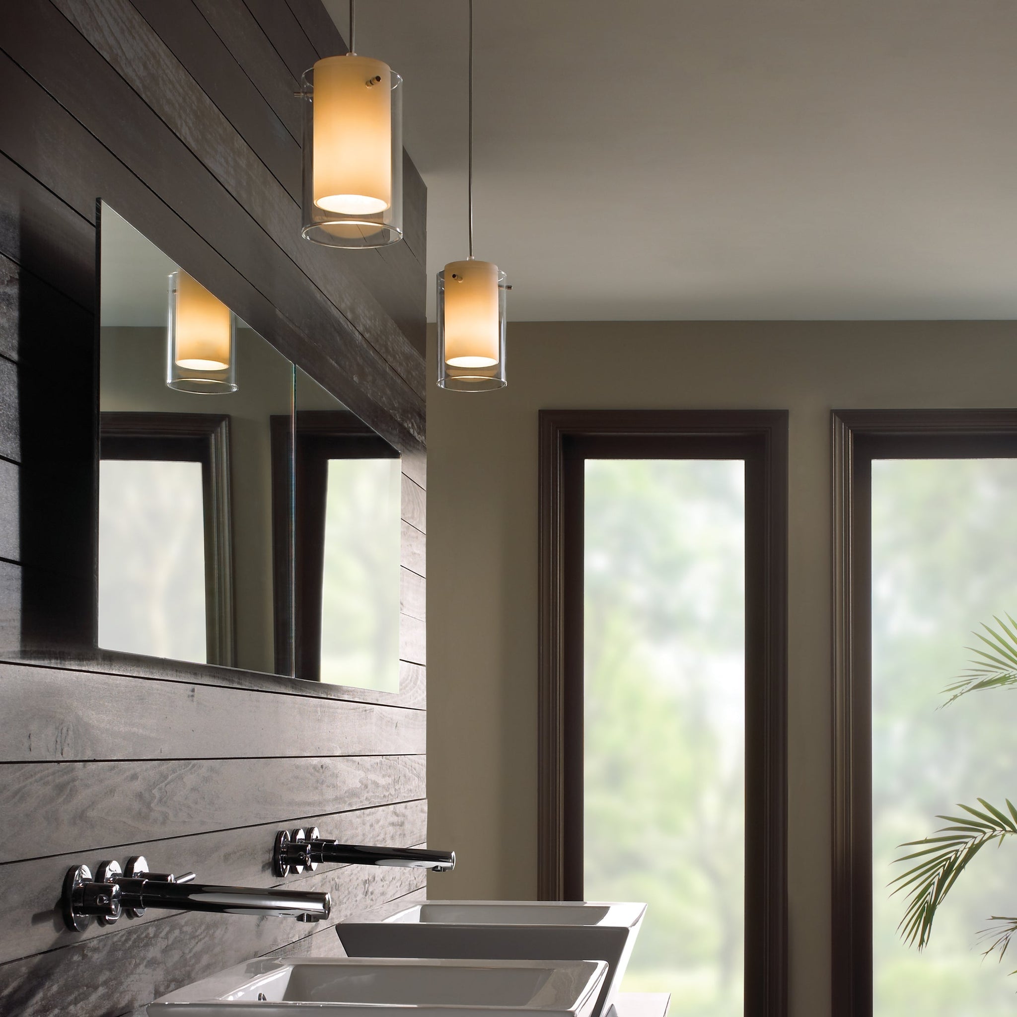 The Echo pendant light by VC Modern is a timeless contemporary glass cylinder pendant. The modern silhouette of this pendant surrounds an inner white glass cylinder to echo with a pop of color while softly diffusing the light within. With on trend color options and high quality finishes the Echo pendant creates an clean yet sophisticated look and feel to any space. This pendant is ideal for home office lighting, bath lighting or even bedroom lighting over bedside tables.