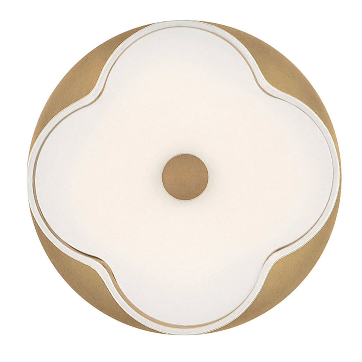 The curved quatrefoil silhouette of Delaney's off-white linen shade elegantly complements traditional aesthetics. Etched glass softly diffuses light, while an oversized decorative canopy in Heritage Brass or Black provides a subtle contrast.