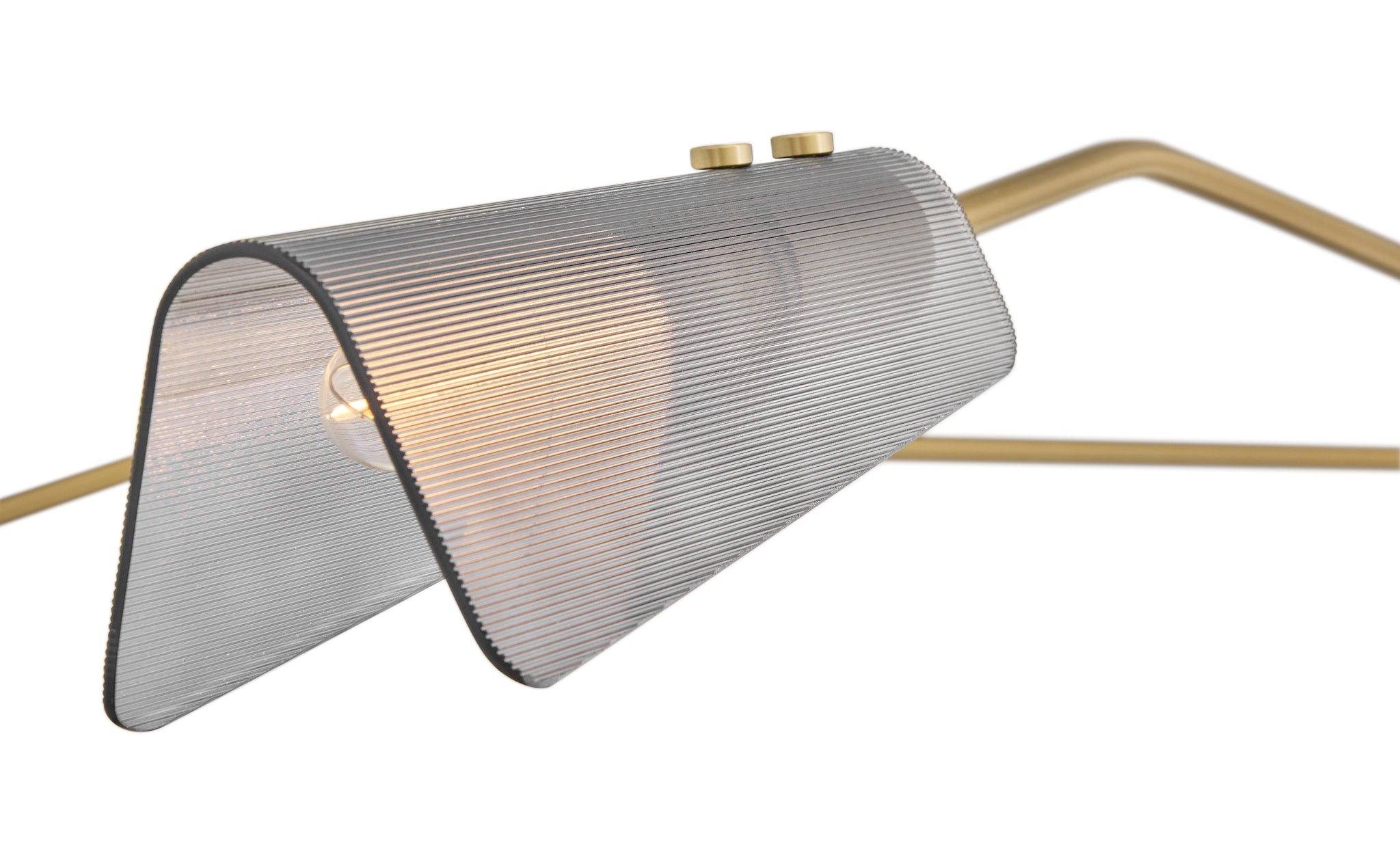 A stunning midcentury treasure, Altman’s industrial style is complemented by a large, folded glass shade at the end of an articulating arm. Ribbed smoked glass or clear glass softly diffuses and directs illumination to accentuate your surrounding space and décor.