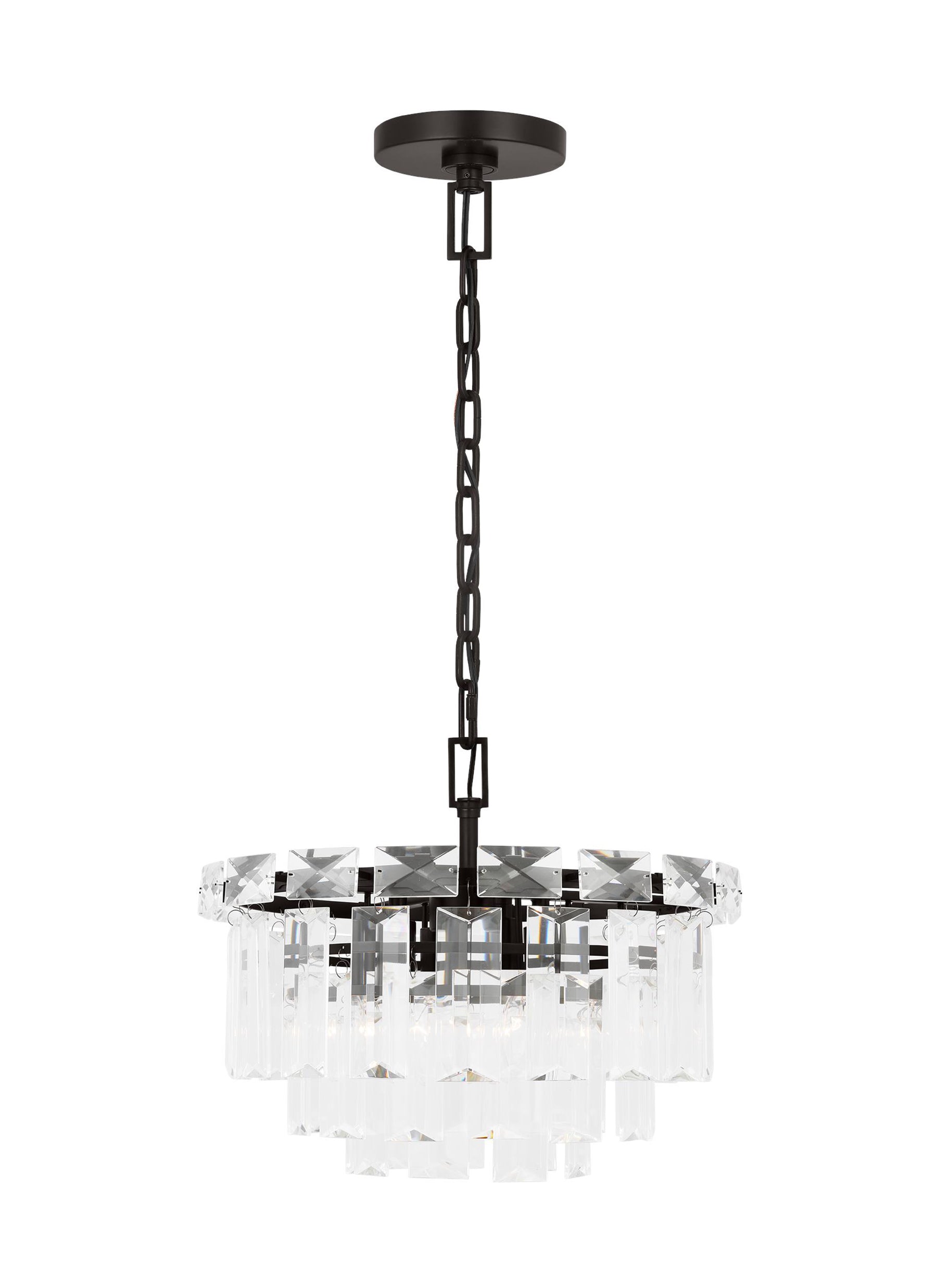 Arden hangs like lush fringe from a welded iron frame, the angular glass juxtaposes elegance