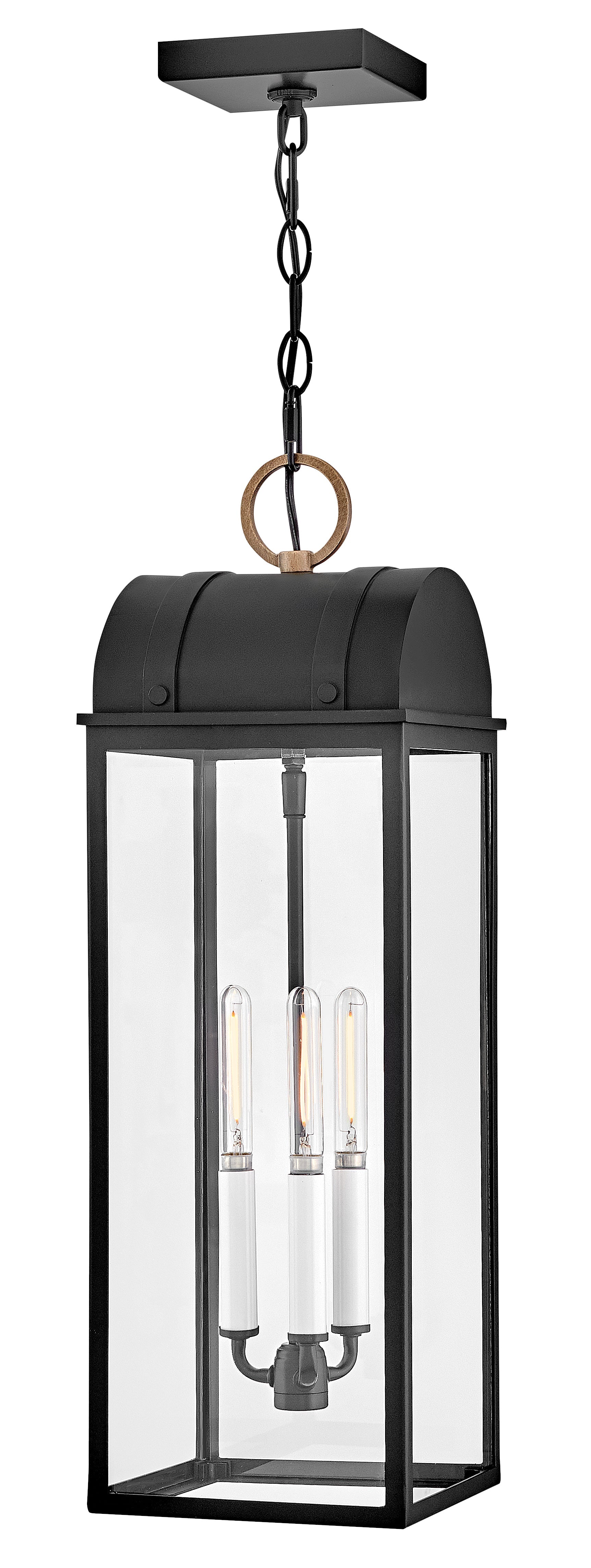 Inspired by traditional colonial lanterns, Campbell’s carriage house styling complements classic architecture accentuated by a bold arched roof and a cast top ring. Candelabra lamps with contrasting warm white candle sleeves are enhanced by a Black with Burnished Bronze finish and a reflective