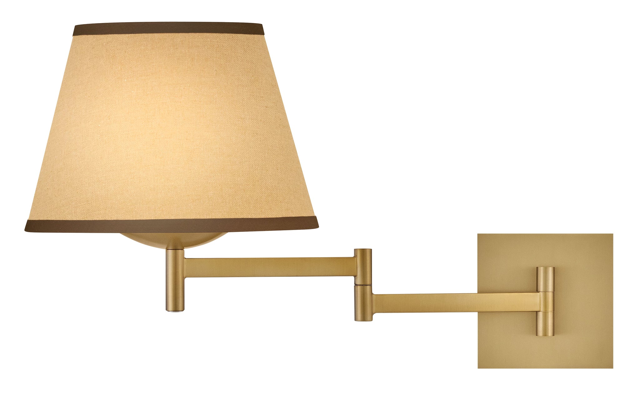 A take on traditional sconce styles, Sonia’s tapered shades feature contrasting top and bottom binding. The chic metal frame and accents are finished in versatile Lacquered Brass to complement any color palette.