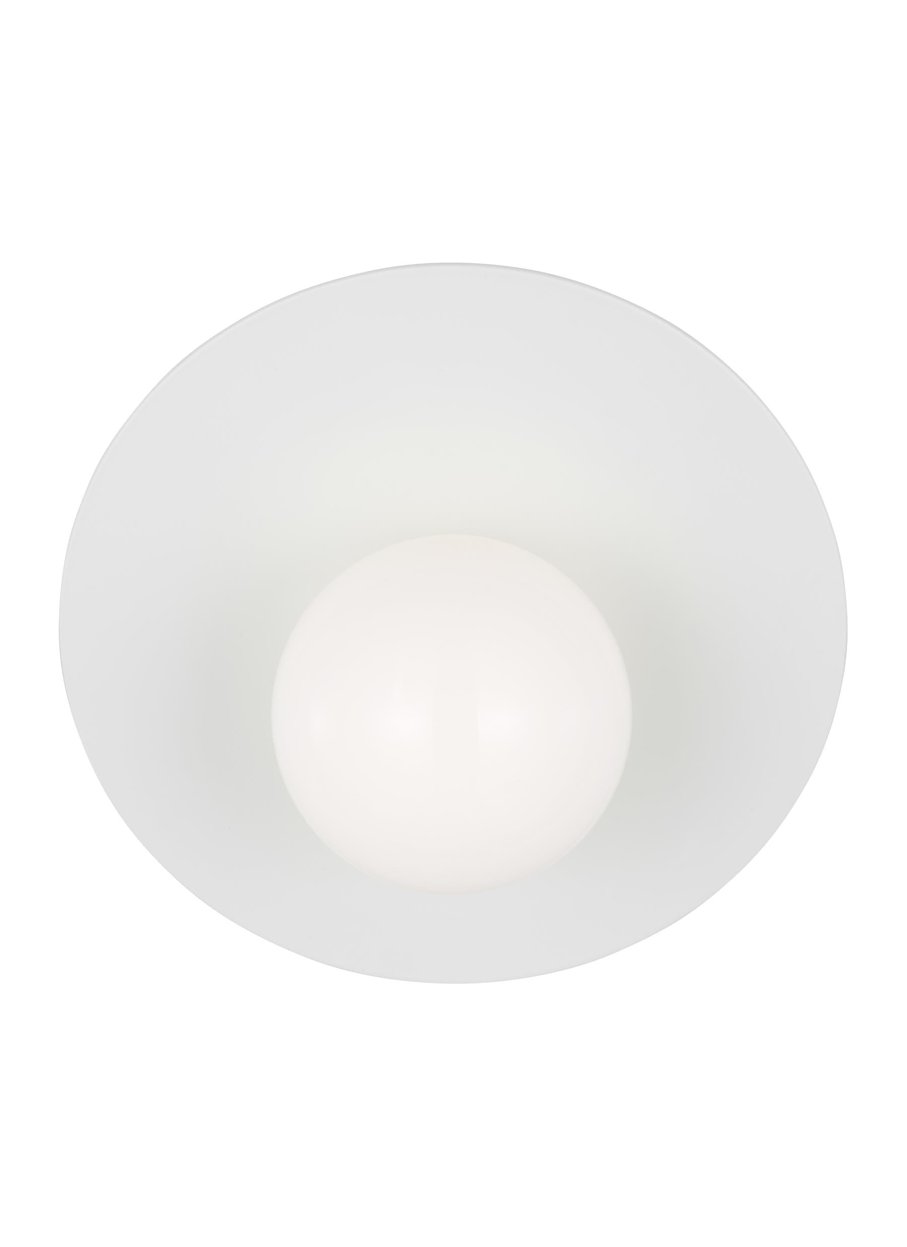 Nodes wall lighting is minimal yet bold, highlighting Kelly's distinctive juxtaposition of mixed-materiality and curvilinear form. Light radiates from milk glass globes set against metal discs. All fixtures can be used or without the discs.