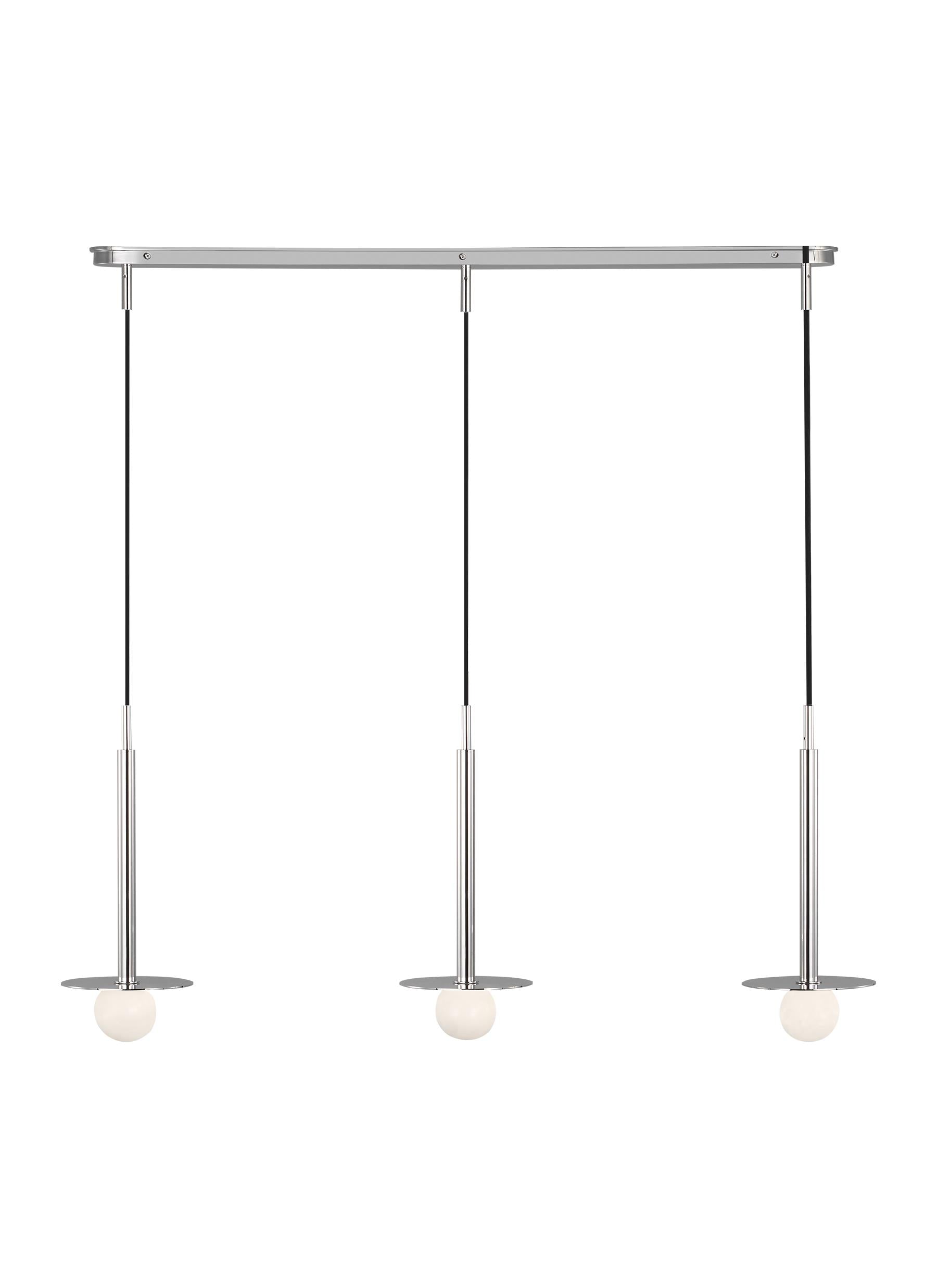 Nodes task, ceiling and wall lighting is minimal yet bold, highlighting Kelly's distinctive juxtaposition of mixed-materiality and curvilinear form. Light radiates from milk glass globes set against metal discs. All fixtures can be used or without the discs. The cast canopy is available in Burnished Brass or Midnight Black. Hanging fixtures within this family feature black fabric cords, while pivot sconces can be cord and plug or hard wire.