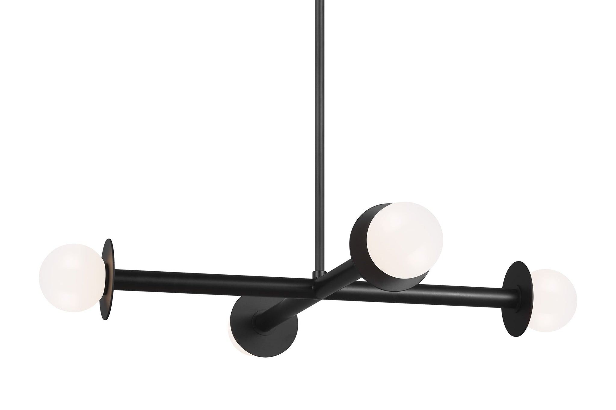 Nodes task, ceiling and wall lighting is minimal yet bold, highlighting Kelly's distinctive juxtaposition of mixed-materiality and curvilinear form. Light radiates from milk glass globes set against metal discs. All fixtures can be used or without the discs. The cast canopy is available in Burnished Brass or Midnight Black. Hanging fixtures within this family feature black fabric cords, while pivot sconces can be cord and plug or hard wire.