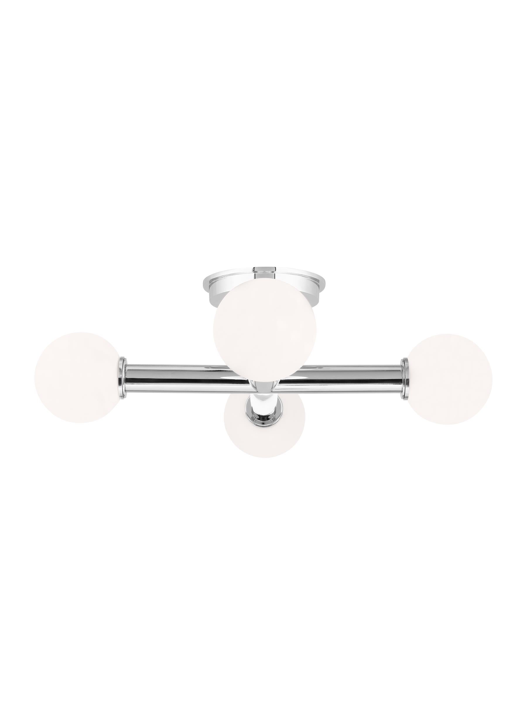 Nodes task, ceiling and wall lighting is minimal yet bold, highlighting Kelly's distinctive juxtaposition of mixed-materiality and curvilinear form. Light radiates from milk glass globes set against metal discs. All fixtures can be used or without the discs. The cast canopy is available in Burnished Brass or Midnight Black.