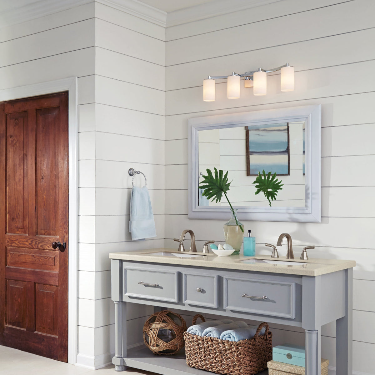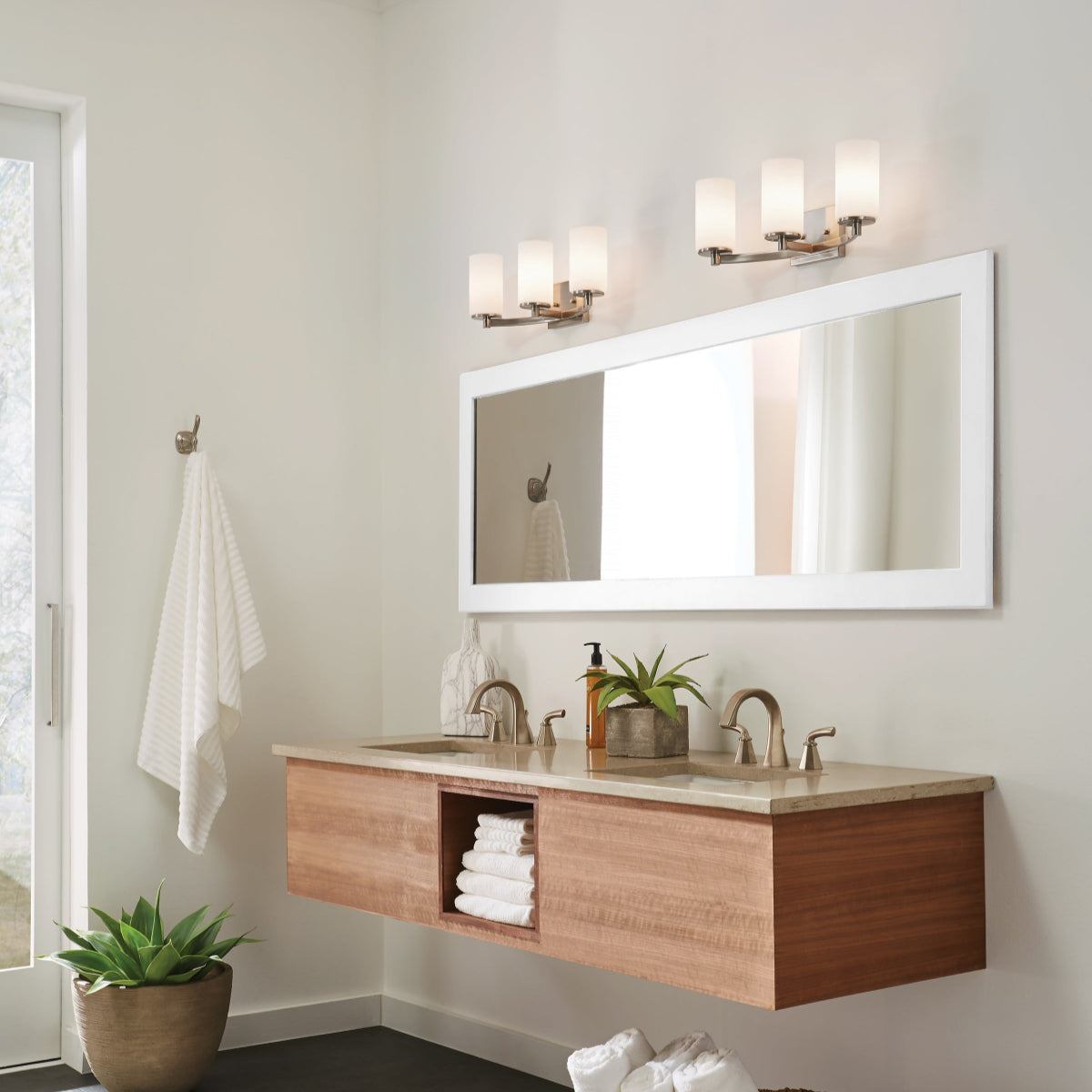Clean lines and a modern vibe makes the Hettinger collection by Visual Comfort Generation perfect for any bathroom, fitting in effortlessly with your decor. The Hettinger's 1L wall bracket works on either side of a mirror, while the 2L and 3L wall fixtures are great over the mirror to brighten the room and provide task lighting. Available in Brushed Nickel or Chrome finishes, along with Aged Iron and Satin Brass finishes.