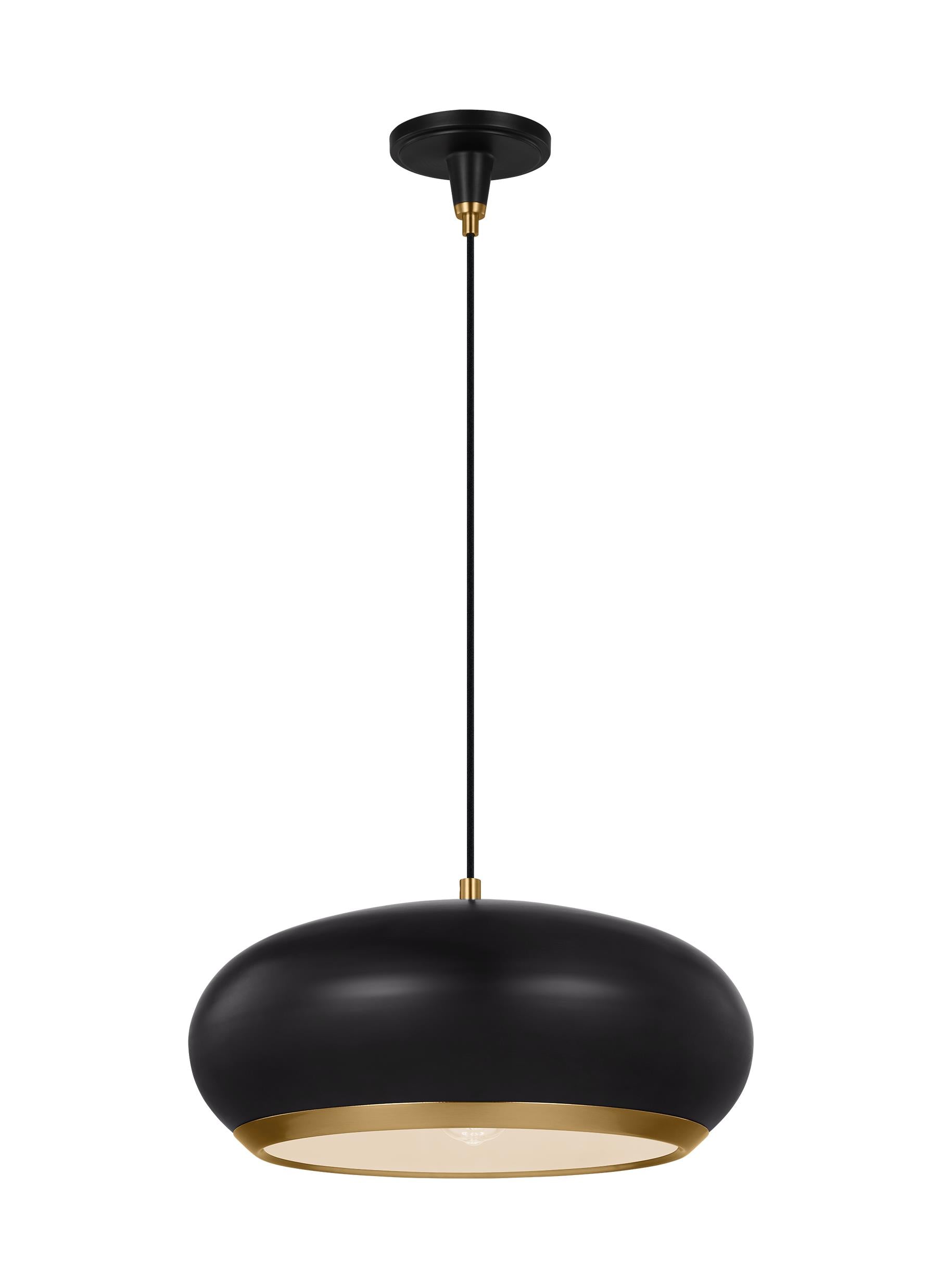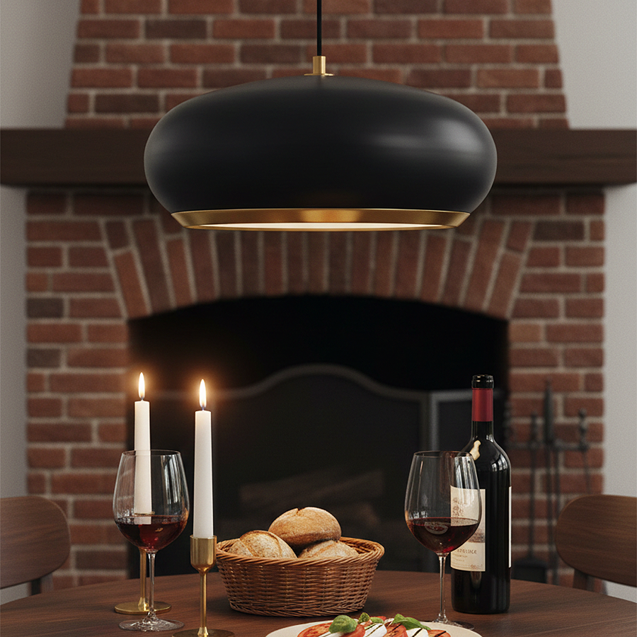 If you were to think of a single pendant over the dining or kitchen table, the Clasica by Thomas O'Brien might be the one. Matte White or Midnight Black large dome with Burnished Brass accents brings a warm and cozy feel to any room.