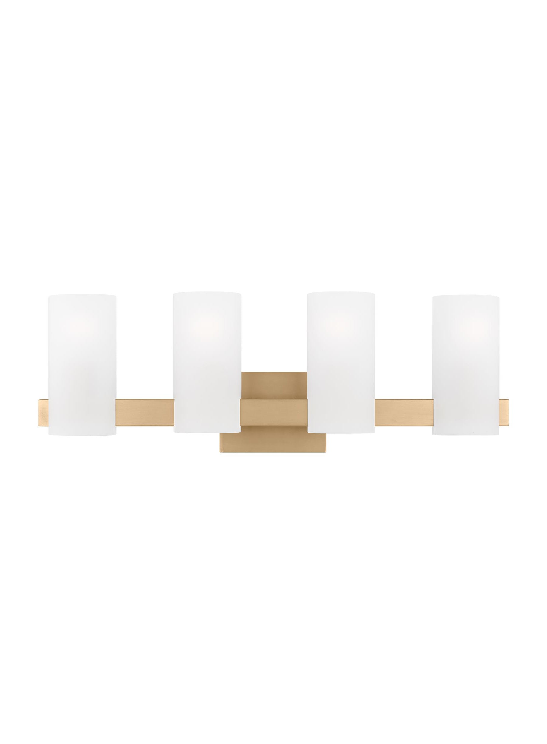 Perfect for the bathroom over a larger mirror, this modern design by the Scott brothers, takes a singular bar and straddles etched white glass shades for a unique design. The look works in a modern apartment or a classic farmhouse looking for a bit of mid-century vibe.